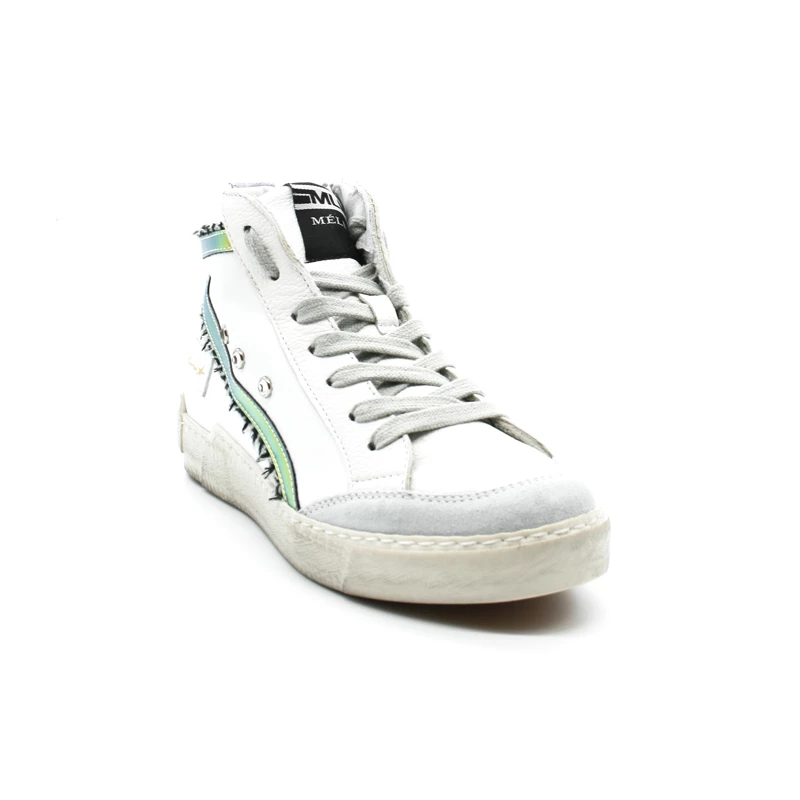 Tige haute en cuir blanc.