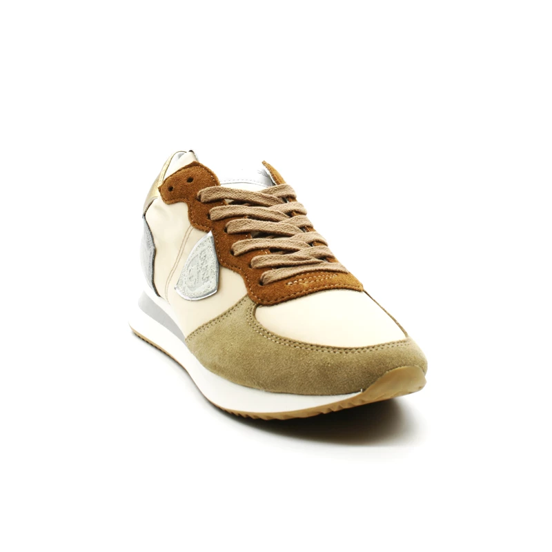 Empeigne et flanc en nylon beige.